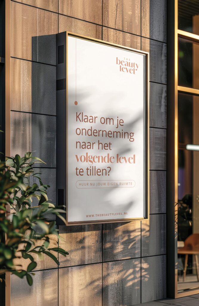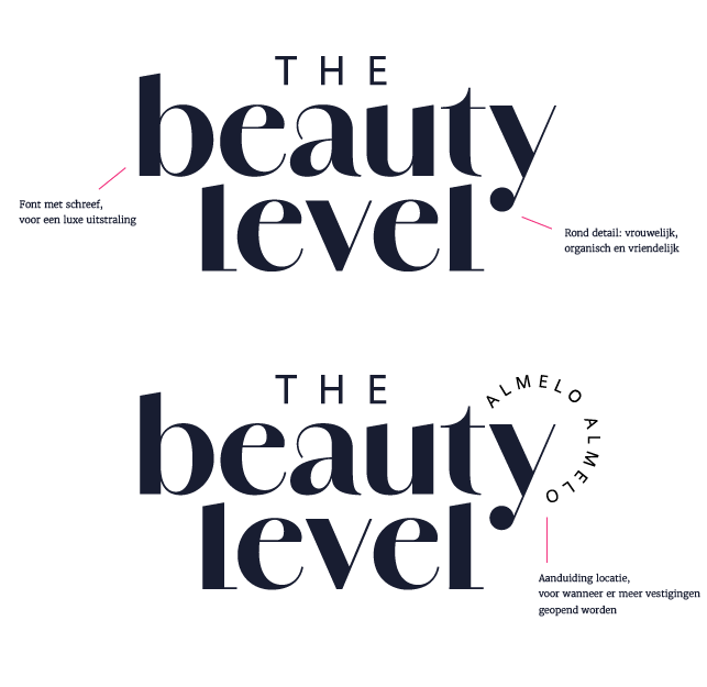 Het logo van The Beauty Level straalt uit waar het merk voor staat: professioneel, warm en vrouwelijk — zonder poespas.